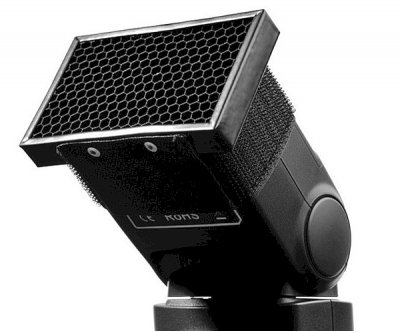 Univerzální voština, která se dá použít pro všechny systémové blesky. Na hlavu blesku nejdříve upevníme pogumovaný pásek a voštinu pak dotáhneme suchým zipem.