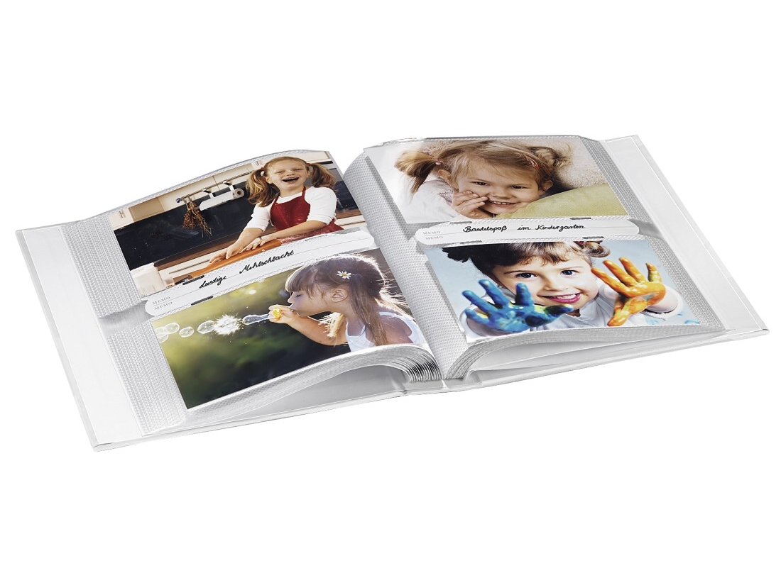 Fotoalbum: - pro zasouvání fotografií - desky z polaminovaného papíru - pro 200 fotografií formátu 10x15 cm - pevná lepená vazba - štítky k popisu fotek - kapsa pro uchování negativů nebo CD - 100 stran - formát alba: 19x25 cm
