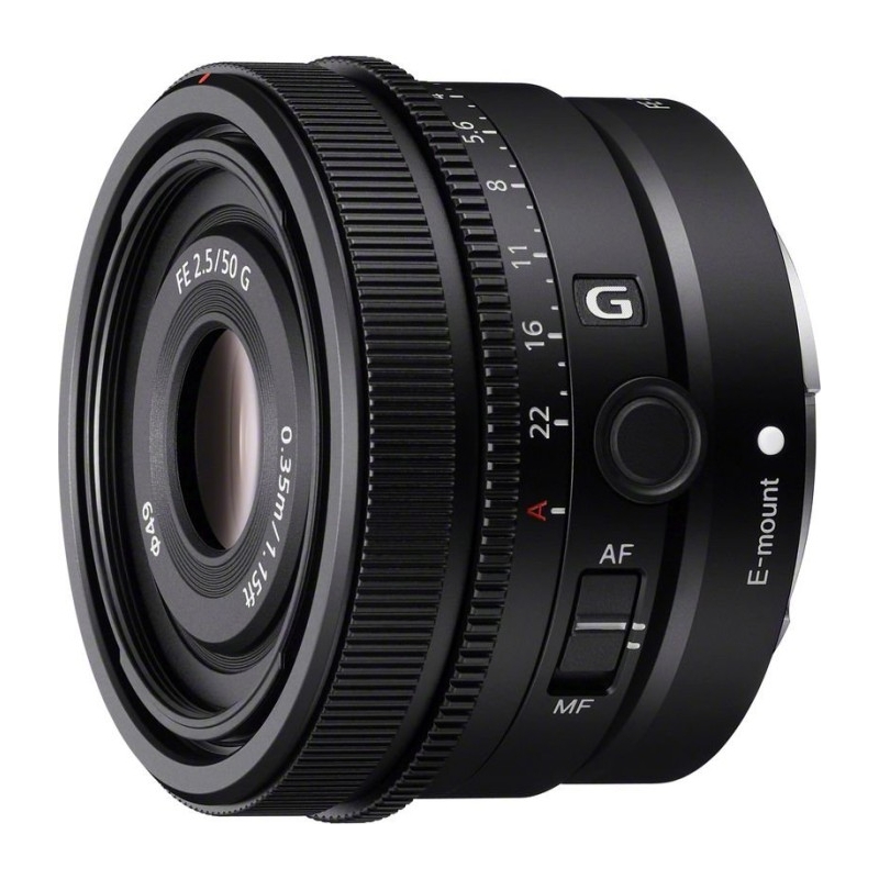 Objektiv s pro fotoaparáty s bajonetem SONY E s ohniskovou vzdáleností 50 mm a světelností 2.5. Toto je jeden z objektivů řady G s pevnou ohniskovou vzdáleností (prodává se samostatně), které při stejném vnějším vzhledu nabízejí různé ohniskové vzdálenosti, průměr filtru mají všechny 49 mm a také kompaktní konstrukci a uspořádání.