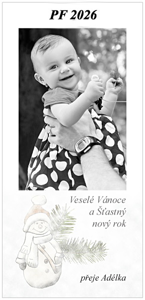 Novoroční PF přání z vašich fotek tiskneme v klasické velikosti 21x10cm. PFko můžete doplnit o text.